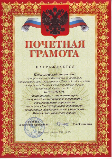 Детский сад "Улыбка" г.Строитель Яковлевского городского округа
