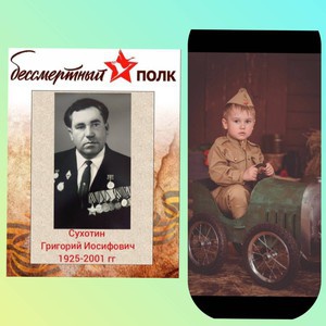 Сухотин Григорий Иосифович, 1925г.р. 17-летним добровольцем ушёл на фронт. Боевое крещение принял в боях на Курско-Орловском направлении летом 1943года. Воевал в составе Центрального фронта, а затем 1-го Белорусского фронта под командованием Рокоссовского. В боях за Белоруссию лично от маршала Рокоссовского получил Орден Славы - высшую награду за солдатскую доблесть. Закончил войну в Восточной Пруссии, в составе 3-го Белорусского фронта под командованием маршала Василевского. В боях за взятие Кенигсберга получил тяжёлое ранение, 7 месяцев провел в госпитале. Прошёл войну от рядового пехотинца до старшины, командира минометного расчёта. Трижды ранен, имеет 9 военных наград, из них: Орден Славы, две медали за отвагу, медаль за боевые заслуги.