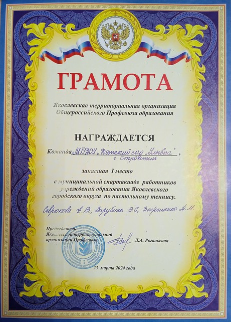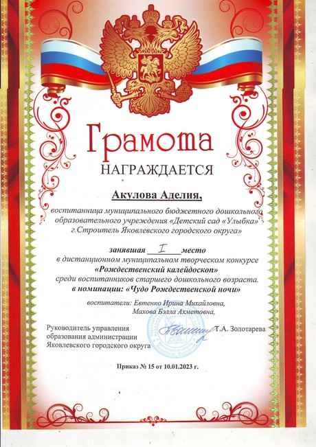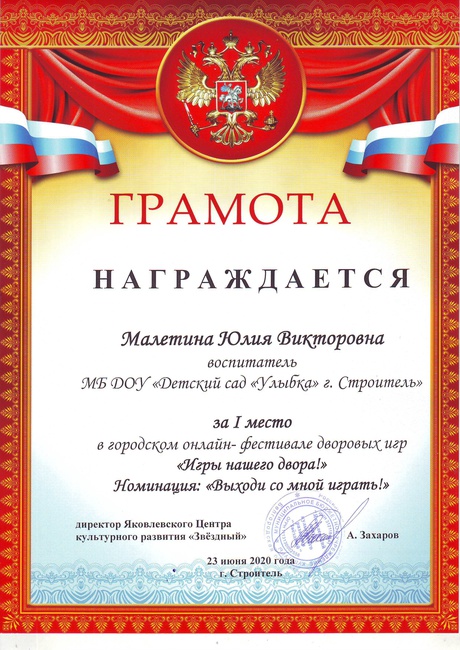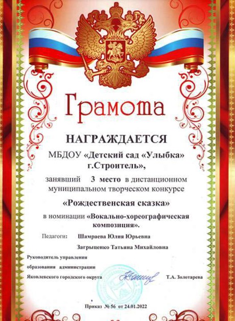 Детский сад "Улыбка" г.Строитель Яковлевского городского округа