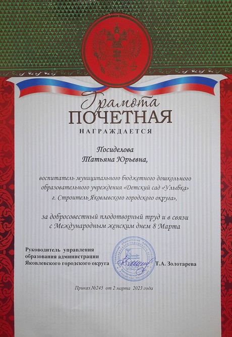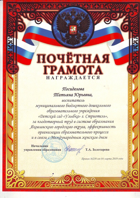 СТРАНИЧКА ВОСПИТАТЕЛЯ ПОСИДЕЛОВОЙ Т. Ю.