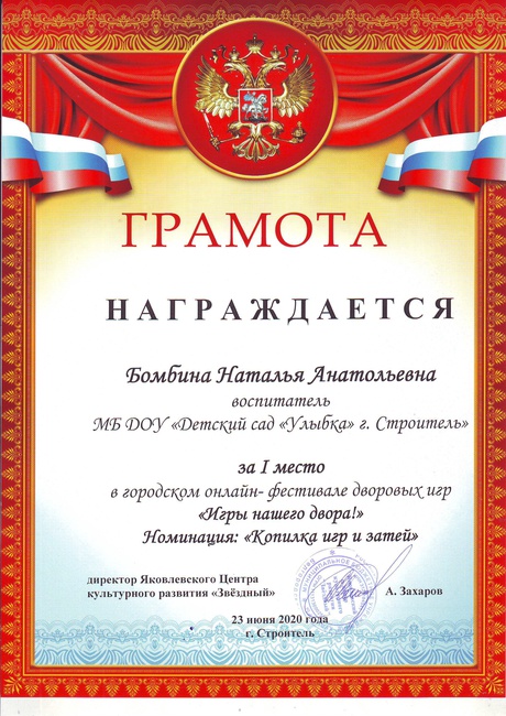 СТРАНИЧКА ВОСПИТАТЕЛЯ БОМБИНОЙ Н.А.