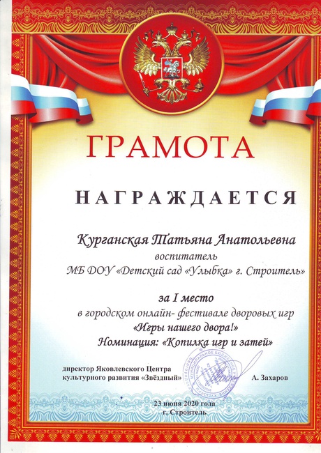 СТРАНИЧКА ВОСПИТАТЕЛЯ КУРГАНСКОЙ Т.А.