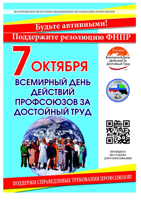 7 октября – Всемирный день действий «За достойный труд!». В этот день трудящиеся всего мира, объединённые в рядах Международной конфедерации профсоюзов, выступают в защиту своих законных прав и интересов.