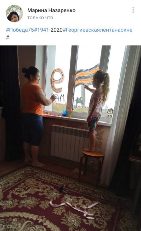Чтобы объединить всех нас в это непростое время и почтить память тех, кто ковал Победу, предлагаем всем желающим присоединиться к акции-челенджу наших воспитанников, приуроченной к 75-летию Победы – украсить окна георгиевскими ленточками. Для детей эта акция станет наглядным уроком патриотического воспитания. Фотографируйте полученный результат, публикуйте в социальных сетях с хештегом #Победа75#1941-2020#Георгиевскаялентанаокне#