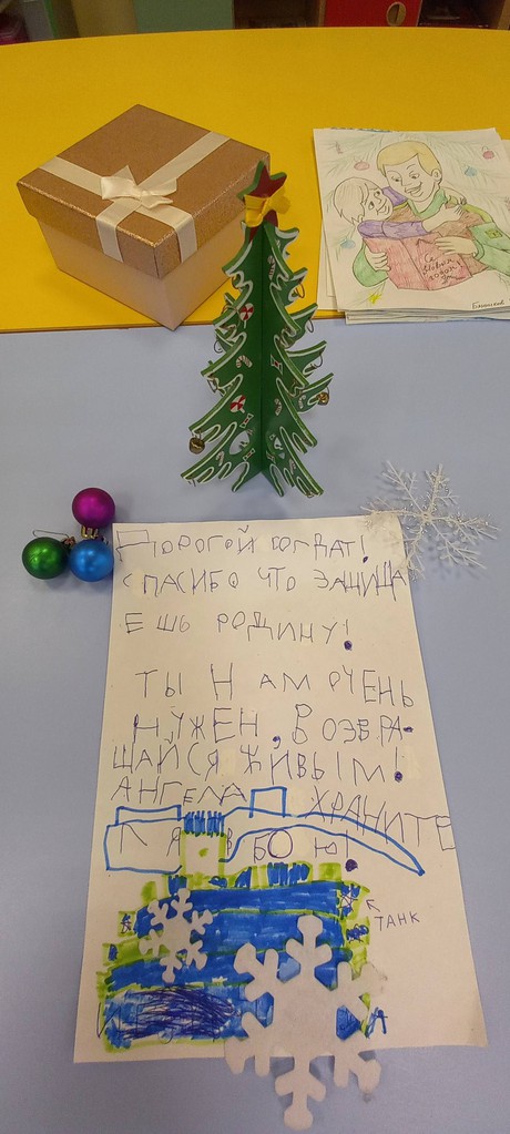 В рамках реализации плана мероприятий патриотический микрофон #Живутгероивпамятинарода педагоги старшей группы вместе с педагогом-психологом провели Акцию «Письмо Герою». Воспитанники старшей группы вместе со своими родителями написали письма солдатам, а педагоги собрали небольшой новогодний подарочек для солдат и передали волонтерам.