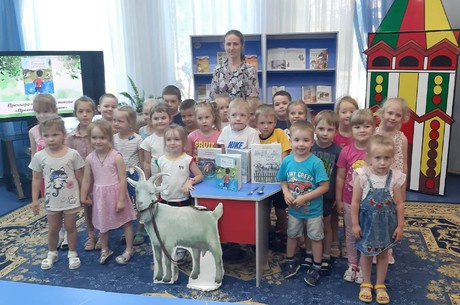 Воспитанники старшей группы очередной раз посетили библиотеку и познакомились с отечественным писателем Станиславом Владимировичем Востоковым, с его замечательными произведениями: «Прокопий Капитонов», «Коровья удочка», «Президент и его министры». Более подробно побеседовали о произведении «Прокопий Капитонов», в котором речь идет о мальчике Прокопии и козленке Кузе, знающем буквы и выражающим свои мысли с помощью рогов. В заключении поиграли в игру «Крокодил», где ребята отгадывали животных. Данное мероприятие получилось весьма познавательное и интересное.