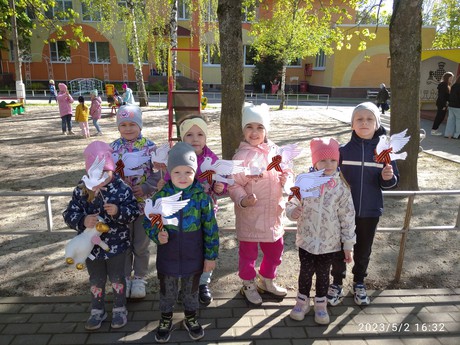 Символ воинской славы, отваги, мужества, символ Победы – всё это можно сказать о георгиевской ленточке. Воспитанники МБДОУ «Детский сад «Улыбка» г.Строитель» присоединились к всероссийской акции. Вместе с главным символом Победы дошкольники вручали листовку с историей ленты и рассказывали, что черно-оранжевые цвета давно стали одним из главных символов именно Дня Победы.