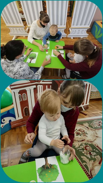 7 октября 2021г. состоялась встреча с родителями и их малышами, посещающими Консультационный центр «Центр игровой поддержки». Воспитатели Фатеева Ю.В., Терехова А.С. провели консультацию для родителей: «Что ребенок должен уметь делать к 2-м годам». Каждый возраст ребенка, в том числе и 2 года, имеет свои особенности физического, психоэмоционального и умственного развития. Убедиться, что кроха развивается в соответствии с возрастом, помогут знания того, что должен уметь ребенок в 2 года. Для детей творчество это самое интересное занятие. Поэтому педагоги вместе с родителями и детьми нарисовали яблочки для ежика, с помощью нетрадиционной техники рисования, ватными палочками. Так же малышам было предложено найти в крупе колечки от пирамидки, ребята ловко справились с этим заданием. И еще поиграли в подвижные игры «Под зонтом», «Поиграем с собачкой». Это время родители и малыши провели с пользой.