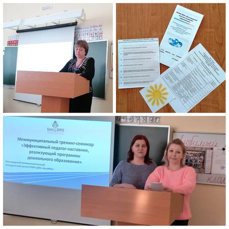 20 февраля педагоги "Детского сада "Улыбка" г.Строитель" приняли участие в межмуниципальном тренинге-семинаре "Эффективный педагог-наставник, реализующий программы дошкольного образования", организованный специалистами ОГАОУ ДПО "Белгородский институт развития образования", на базе МОУ "Начальная школа п. Дубовое" Белгородского района. С приветственным словом выступила заведующий Михайлова Ю.С., она рассказала о своем учреждении и пожелала всем творческой работы. Карпенко Н.Н., методист Белгородского ММЦ ОГАОУ ДПО "БелИРО" познакомила с нормативными документами, касающимися темы 2023 года "Наставничество в дошкольном образовании". Коллеги из Белгородской области поделились своим опытом работы в данном направлении и провели мастер-классы.