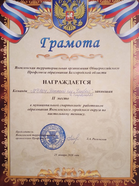 25 января состоялся очередной этап XV муниципальной спартакиады работников образования Яковлевского городского округа по настольному теннису. По сигналу судьи начались теннисные баталии. Несмотря на острую борьбу, турнир проходил в теплой, дружественной обстановке, слышались шутки и смех. Но, несмотря на юмор, каждый желал стать первым в соревнованиях, показать свое мастерство в лучшем свете. Одни старались набрать очки за счет «хитрых» подач, другие предпочитали силовую, наступательную тактику, постоянно атакуя противостоящего теннисиста. В итоге побеждал тот, чье совокупное мастерство оказывалось выше.