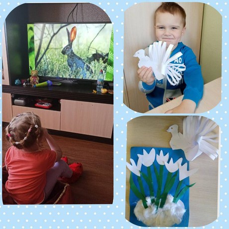 Детям было предложено посмотреть видео-презентацию о том, что делают животные весной.
