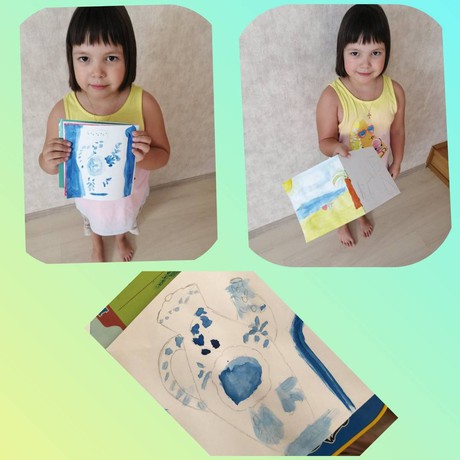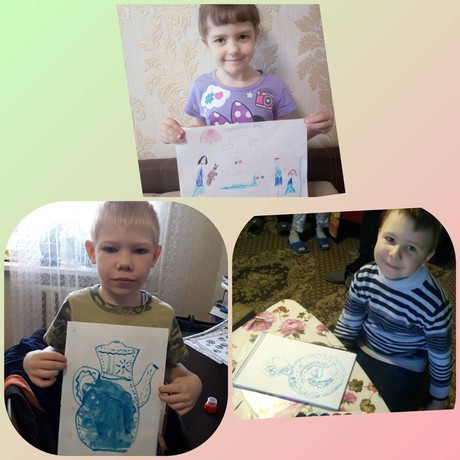 Провела НОД по развитию речи:"Рассказывание на тему", "Забавные истории из моей жизни". Основная цель умеют ли дети составлять подробные и логические рассказы на тему из личного опыта. Помогать детям употреблять в речи слова в точном соответствии со смыслом. Отрабатывать интонационную выразительность речи. А также задействовала своих воспитанников в художественно эстетическом развитие(рисование)по теме:"Роспись силуэтов гжельской посуды". Цель учить детей расписывать посуду, располагаю узор по форме. Развивать эстетическое восприятие произведений народного творчества. Закреплять умение рисовать акварельными красками, готовить на политред нужныео оттенки цвета. Развивать эмоционально положительное отношение к гжельским изделиям.