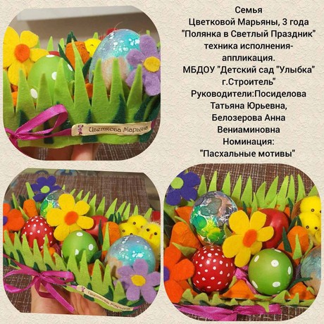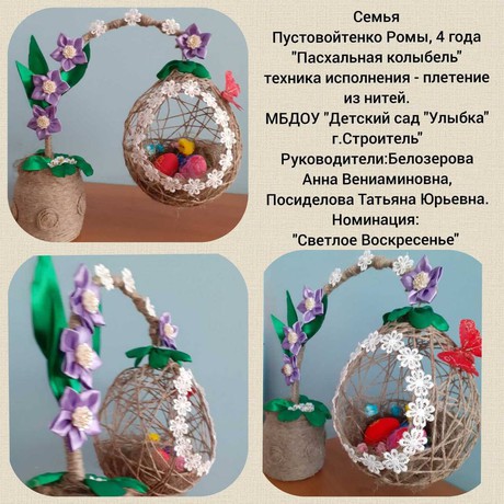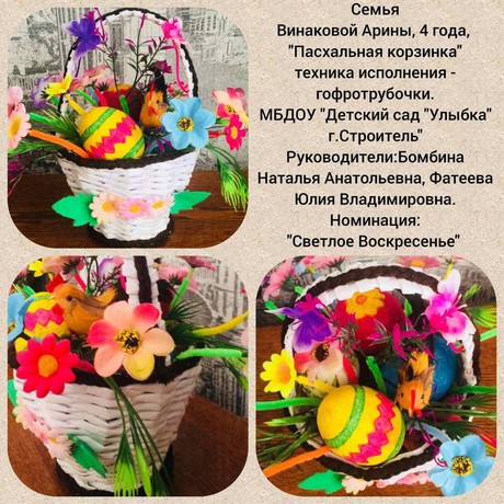 Воспитанники нашего детского сада вместе со своими родителями (законными представителями) приняли участии в муниципальном Пасхальном конкурса-фестивале детского творчества «Радость души моей!».