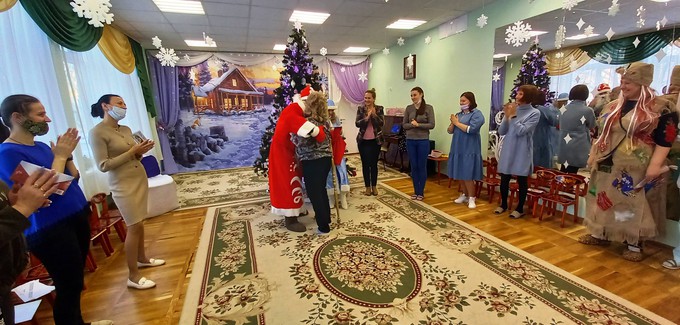 Веселые Дед Мороз и Снегурочка поздравили коллектив детского сада "Улыбка" с Наступающим 2022 Новым годом и подарили подарки. Заведующий Елена Викторовна присоединилась к поздравлениям: "Дорогие коллеги, поздравляем вас с новогодними праздниками! Желаем, чтобы этот новый год стал для нашего учреждения отличным продолжением нашей продуктивной работы, чтобы улучшились материальные возможности каждого из нас. Пусть работа приносит нам не только доход, а и вдохновение, самореализацию и уверенность в завтрашнем дне, а после работы нас ждут теплый дом, любимые близкие, любовь и уют.Пусть новогодняя ночь исполнит желание каждого из вас и подарит всем чудесное настроение!"
