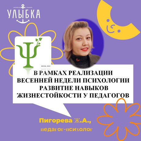 В рамках реализации традиционной весенней Недели психологии Жанна Александровна, педагог-психолог провела мероприятие на тему: "Развитие навыков жизнестойкости у педагогов".