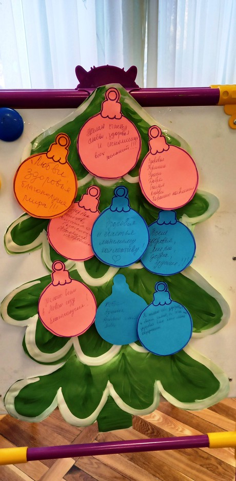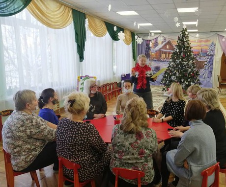 В преддверии нового года педагог-психолог провела для педагогического коллектива ресурсный тренинг «Новогодняя сказка». Новый год – один из самых долгожданных, радостных и любимых праздников. Каждый из нас ждет чудес и волшебства в новогоднюю ночь. Цель тренинга направлена на психоэмоциональную разгрузку, создание праздничного настроения в коллективе. Педагогам были предложены веселые игры и упражнения такие, как: «Новый год для меня это……», «Если бы я была Снежной королевой, я была счастлива потому, что……», «Раз, два, три в круг дружелюбности попади», «Что нас ждет в новом году……», «Исполни желания Деда Мороза», «Что пожелать тебе любимый коллектив…!?». Вот и праздничное настроение поселилось у педагогов детского сада «Улыбка». Желаем всем в наступающем 2022 году здоровья, оптимизма, творческих успехов, воплощения в жизнь интересных планов и идей!