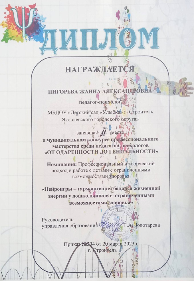 Поздравляем нашего педагога-психолога Жанну Александровну с дипломом 2 места в муниципальном профессиональном конкурсе "От одаренности до гениальности"! Желаем не останавливаться на достигнутом результате и стремиться развиваться и познавать все большее. Пусть всегда горит энтузиазм в глазах, и раскрываются возможности. Вперед, к новым победам!
