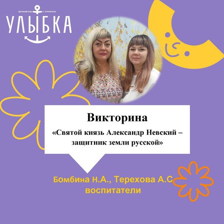 6 декабря с детьми группы компенсирующей направленности, была проведена викторина, посвящённая великому русскому князю и полководцу Александру Невскому.
