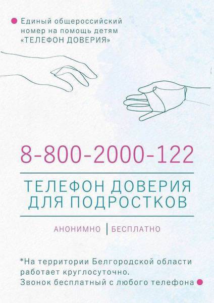 «Детский телефон доверия» в Белгородской области работает круглосуточно ☎️