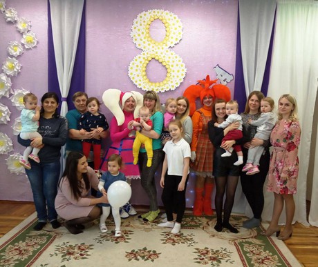 В канун весеннего праздника 04 марта 2020 года в Консультационном центре для родителей и их малышей педагоги (учитель – логопед Пигорева Ж.А. в роли Розочки, инструктор по ФК Загрыценко Т.М. в роли Лизы, музыкальный руководитель Шамраева Ю.Ю. – ответственный за музыкальные игры), провели праздничное мероприятие, приуроченное ко Дню 8-Марта! Гостей встречали две веселые собачки Барбоскины Лиза и Розочка. В праздничных играх и конкурсах активно принимали участие и мамы, и бабушки и малыши. Интересно и весело прошли конкурсы: «Кто быстрее развесит белье?» с малышом в руках, «Хозяюшка», «Самая музыкальная», «Самая читающая семья», «Кто быстрее соберет слово из цветов?», «Карусель», «Мама песню напевала» (мамам предлагается спеть колыбельную песню для ребенка), «Танец маленьких утят». Весеннее настроение, весёлые детские улыбки зарядили энергией всех участников! Праздник был полон веселья, радости, нежности и конечно любви.