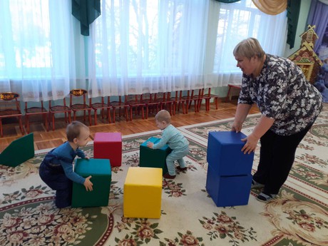 Всем известно, что игра для ребенка – это самое любимое занятие. Во время игры дети: выдумывают сюжет и обстановку вокруг себя, проговаривают свои шаги и вступают в диалоги между своими героями, переживают, радуются, злятся и грустят в ролях своих героев. Поэтому, важно дать ребенку материалы, с помощью которых он может создать свое игровое пространство. Педагоги, Посиделова Т.Ю. и Куганская Т.А. в ходе игрового сеанса предложили малышам сюжетно-ролевые игры. Дети с удовольствием конструировали из мягких модулей, помогали ежику нетрадиционным способом рисовать грибочки с помощью поролоновой губки.