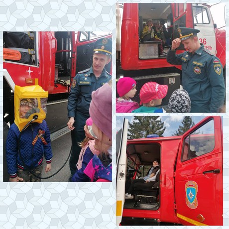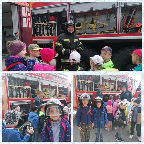 Никита Сергеевич предложил ребятам посидеть в пожарной машине, примерить шлемы, потрогать своими руками инструменты. Дети отметили, что все инструменты очень тяжелые и сделали вывод, что пожарные очень сильные. Воспитанники с огромным интересом слушали пожарного, много задавали вопросов. И конечно уже много было желающих ребят в будущем стать пожарными. От девочек тоже поступил вопрос: «А может ли женщина стать пожарным? На что Никита Сергеевич ответил: «Что это очень тяжелая и опасная работа, но по желанию конечно может».