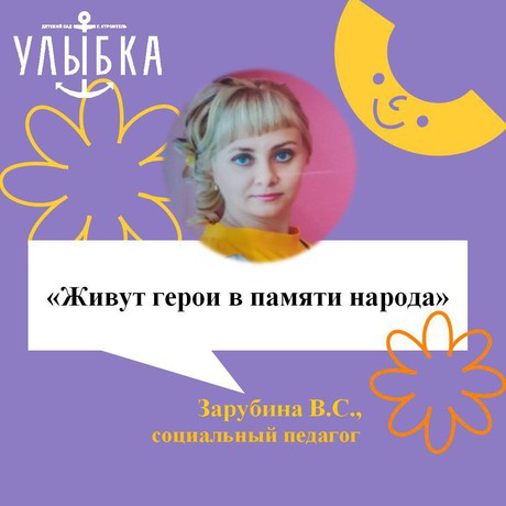 В рамках этого праздника подготовительная группа «А» и группа компенсирующей направленности посетили Аллею Славы в детском саду «Сретенский» г. Строитель. Аллея Славы – это Аллея, на которой информация Прохоровского танкового сражения в ВОВ 1941-1945 гг. и до наших дней. Экскурсовод рассказала детям о ВОВ, о героях и их подвигах. Все остались довольны проведенной экскурсией, узнали много нового и полезного, выразили огромную благодарность экскурсоводу за ее проведение.