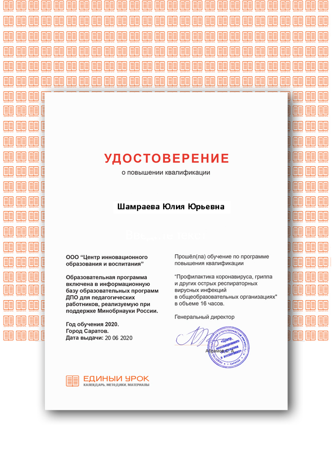Данные о повышении квалификации и (или) профессиональной переподготовке: