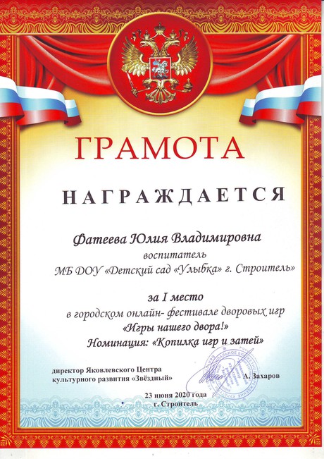 Занимаемая должность: воспитатель